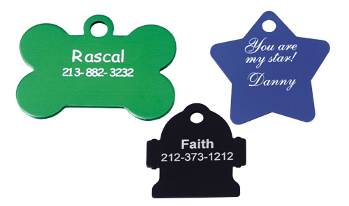 Dog tags can be utilized for everything from I.D. tags for pets and medical alert.Tags engrave a frosty white color for a nice contrast and are .040” thickness with a precut hole, for beaded chain or key ring. Dimensions 1 ¼” x 1⁄8”. Contact Us for quantity pricing. Sold in lots of 50.