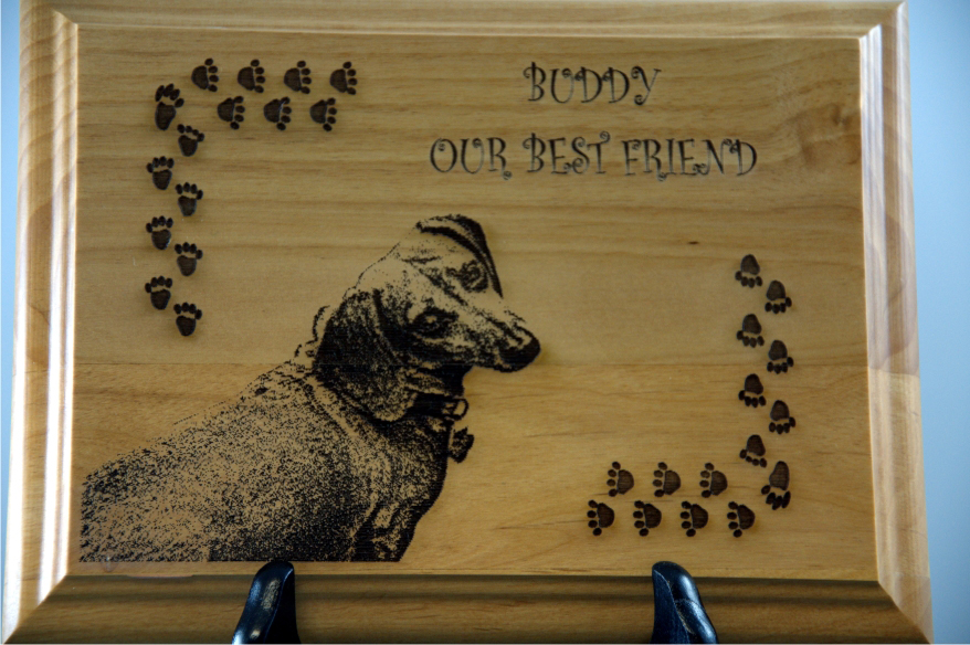6x8 Genuine Alder Photo Plaques. Due to the many variables of engraving photos, please call 603-289-4526 for pricing or use our custom quote form to explain your idea and upload your text and photos.