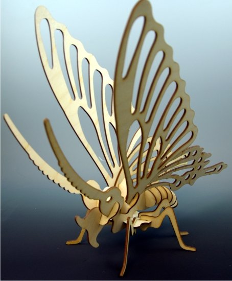 Unique 3-D Butterfly Puzzle. Made from 100% Baltic wood, little or no gluing neccessary. Recommended for age 7yrs. and up.