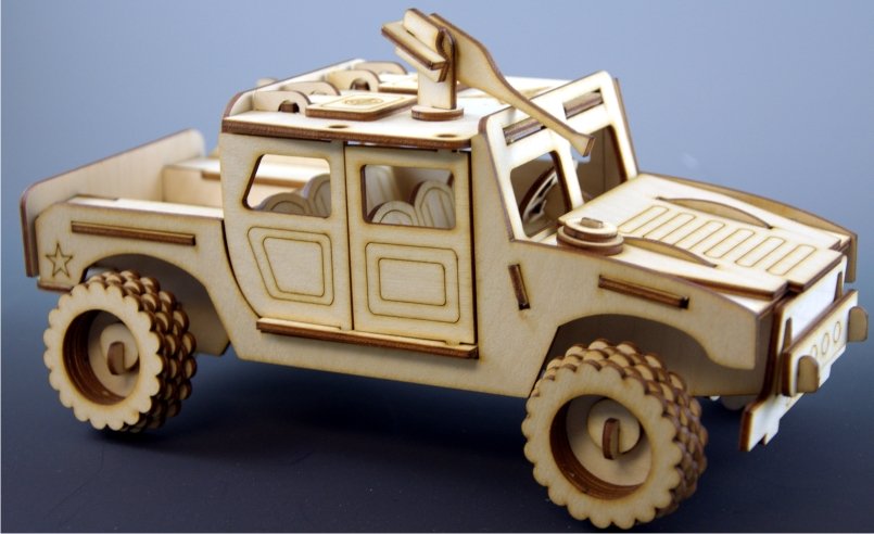 Unique 3-D Hummer Puzzle with working parts. Made from 100% Baltic wood, little or no gluing neccessary. Recommended for age 7yrs. and up.