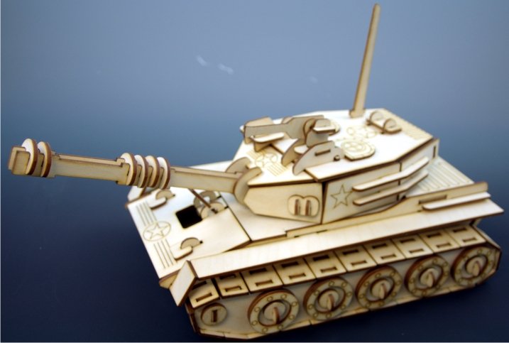 Unique 3-D Tank Puzzle with working parts. Made from 100% Baltic wood, little or no gluing neccessary. Recommended for age 7yrs. and up.